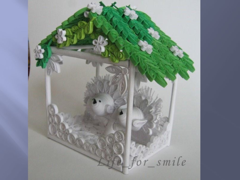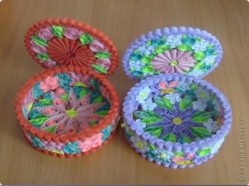 квиллинг опровергает это утверждение – на филигранную объёмную подставку можно поставить, к примеру, чашку или положить тяжелую книгу, и ни один завиток бумажного кружева при этом не пострадает. Можно собрать из бумажных элементов вазу для конфет и спокойно использовать её по назначению — она не развалится и не сломается. Одним словом, квиллинг — это возможность увидеть необычные возможности обычной бумаги.