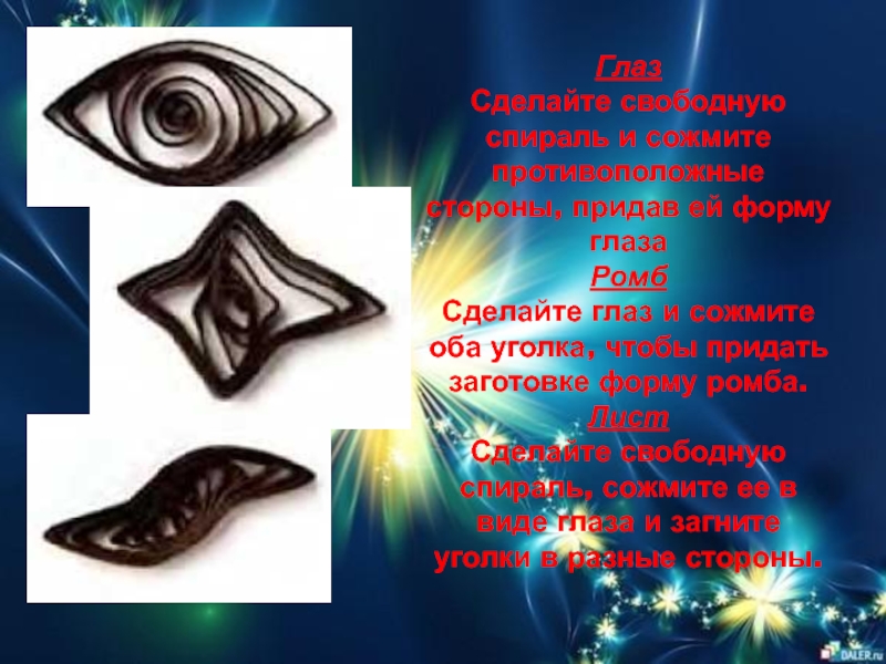 Сделайте свободную спираль и сожмите противоположные стороны, придав ей форму глаза
