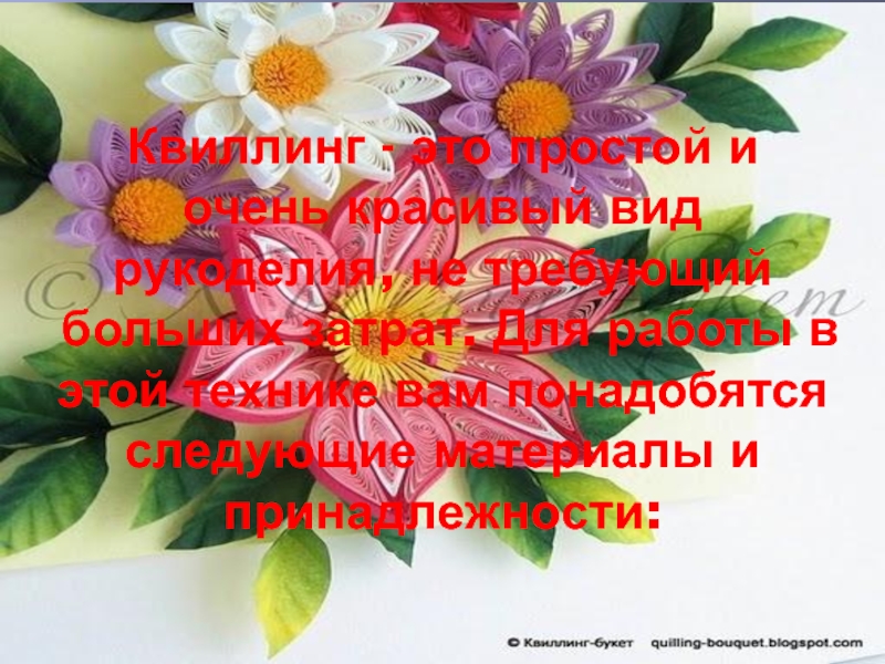 Слайд 3Квиллинг - это простой и очень красивый вид рукоделия, не требующий