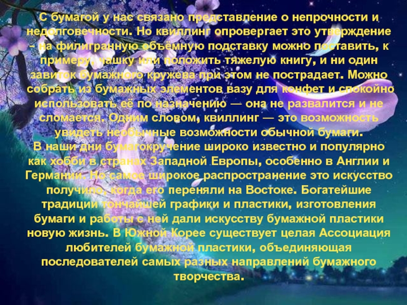 Слайд 13С бумагой у нас связано представление о непрочности и недолговечности. Но
