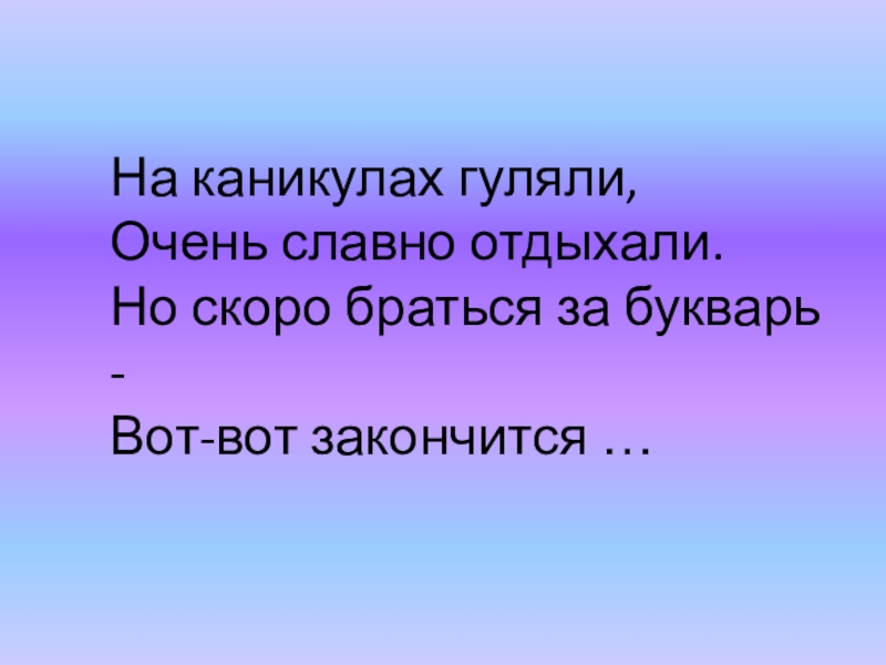 На каникулах гуляли, Очень славно отдыхали. Но скоро браться за букварь - Вот-вот закончится …