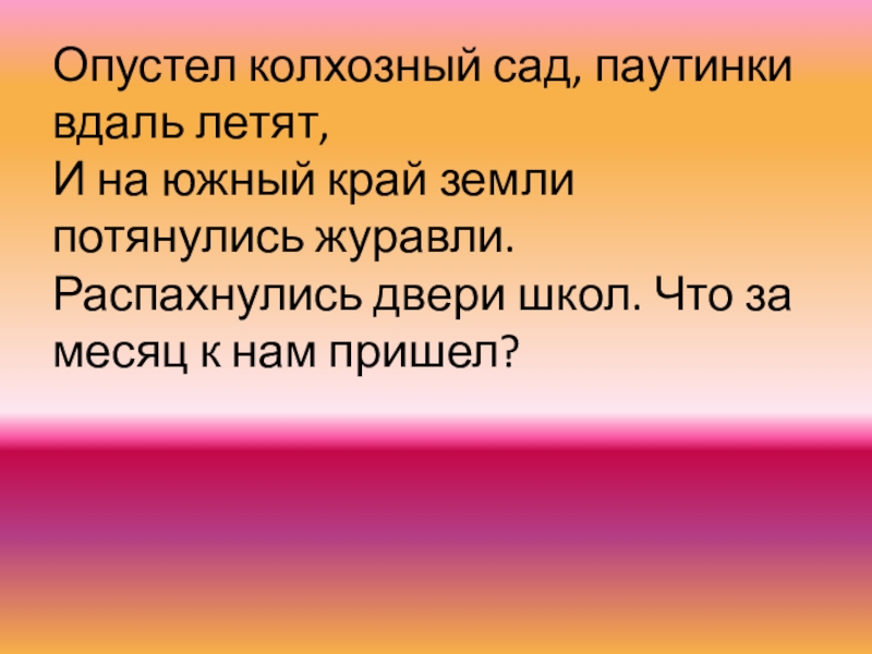 журавли. Распахнулись двери школ. Что за месяц к нам пришел?