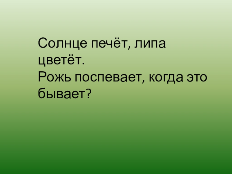 Солнце печёт, липа цветёт.  Рожь поспевает, когда это бывает?