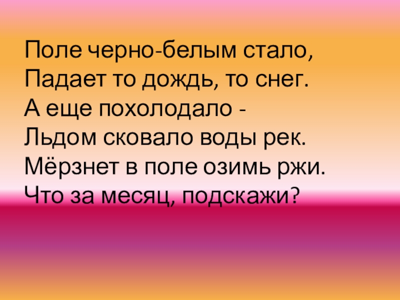 воды рек. Мёрзнет в поле озимь ржи. Что за месяц, подскажи?