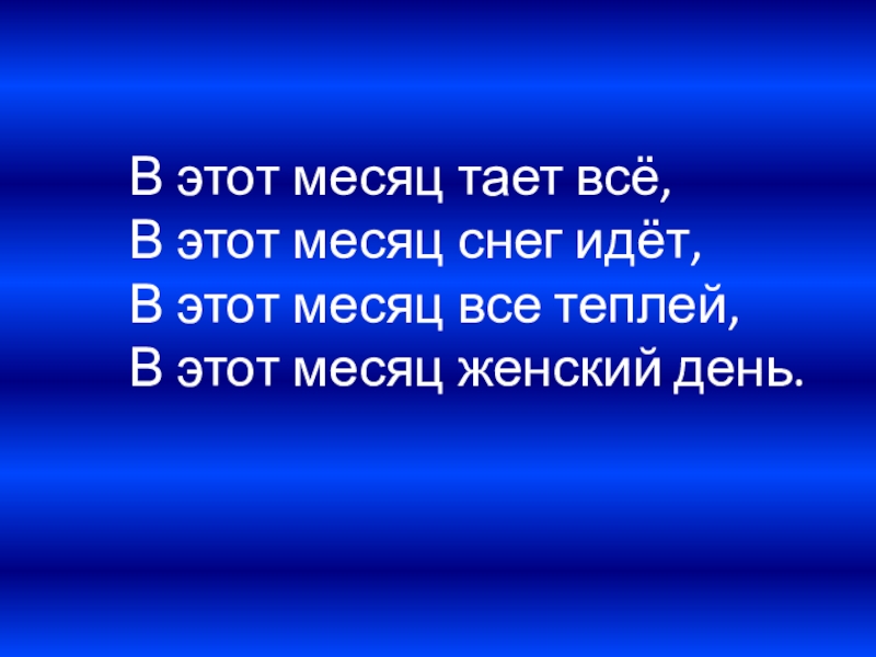 В этот месяц тает всё,  В этот месяц снег идёт,  В этот месяц все теплей,  В этот