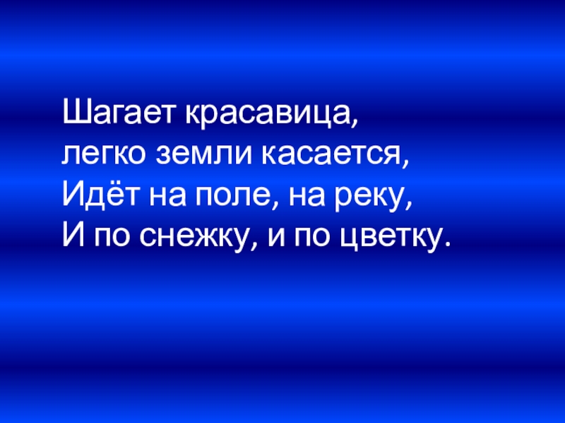 Шагает красавица,  легко земли касается,  Идёт на поле, на реку,  И по снежку, и по цветку.