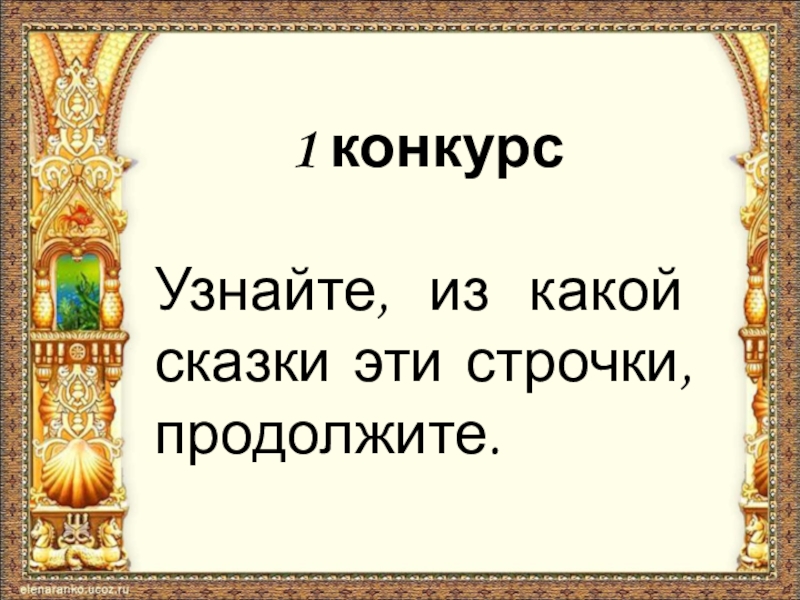 1 конкурс Узнайте, из какой сказки эти строчки, продолжите.