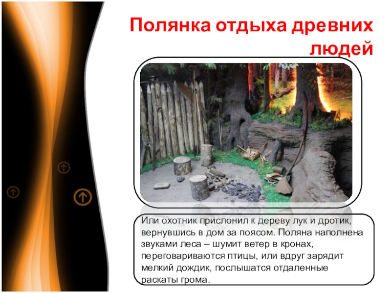 Слайд 15Полянка отдыха древних людей