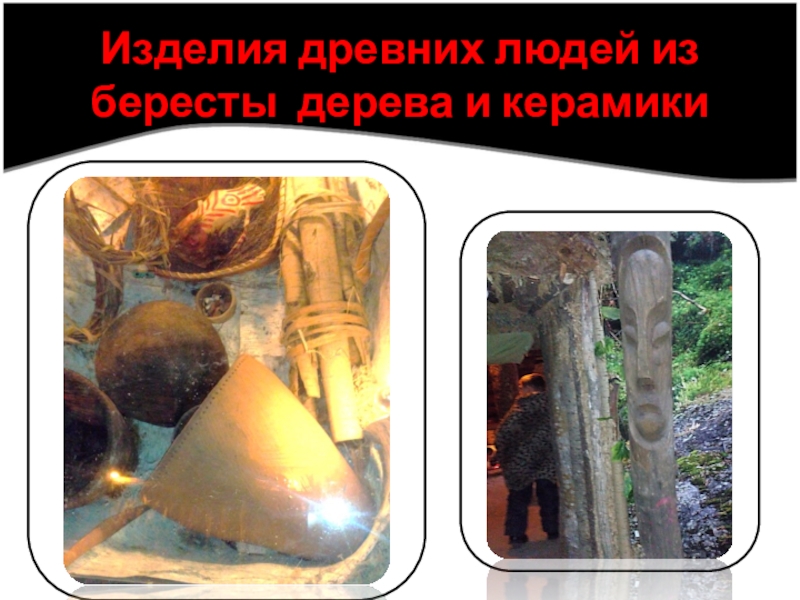 Слайд 23Изделия древних людей из бересты дерева и керамики