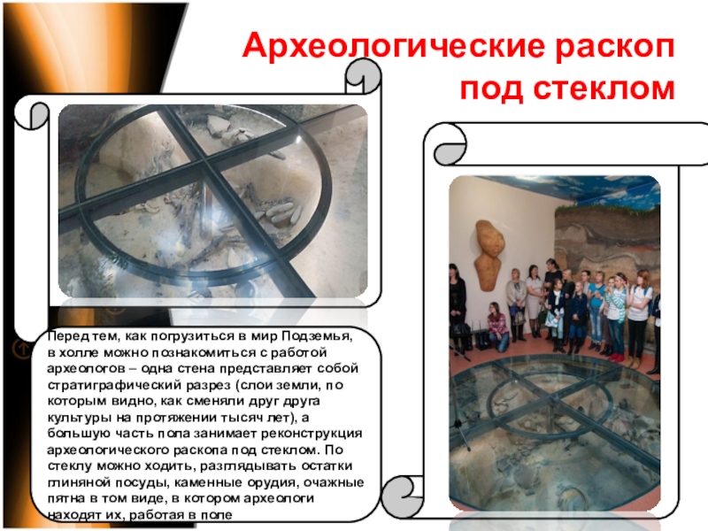 Слайд 11Археологические раскоп под стеклом