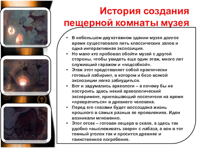 Слайд 7История создания пещерной комнаты музея