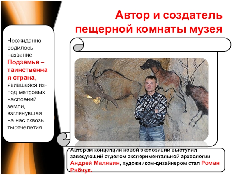 Слайд 9Автор и создатель пещерной комнаты музея