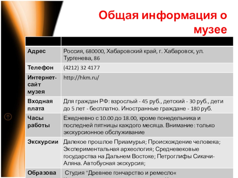 Общая информация о музее.
