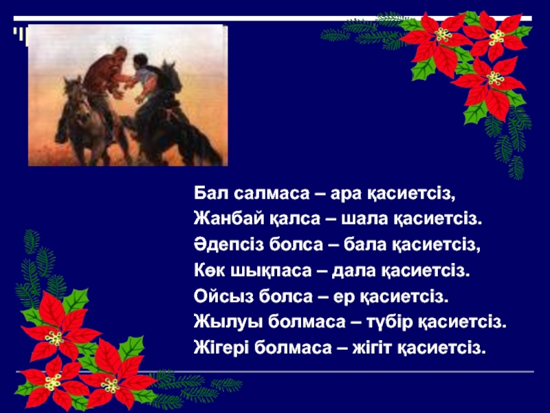 өзі нәр. Ата салты – ардақты, Әрбір сөзі – салмақты Сол сөздерді ұқпасаң Тістерсің бір күн бармақты