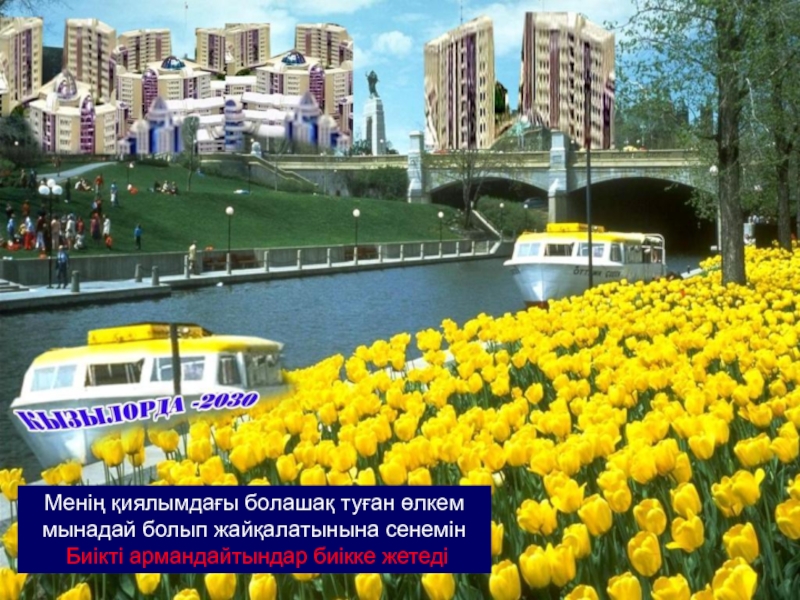 Слайд 23Менің қиялымдағы болашақ туған өлкем мынадай болып жайқалатынына сенемін