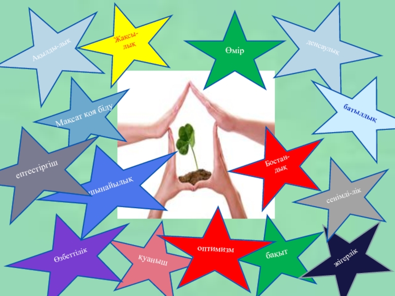 Ақылды-лықЖақсы-лықденсаулыққуанышбақытБостан-дықӨзбеттілікжігерлікбатылдықсенімді-лікшынайылықӨмірМақсат қоя білуептестіргішоптимизм
