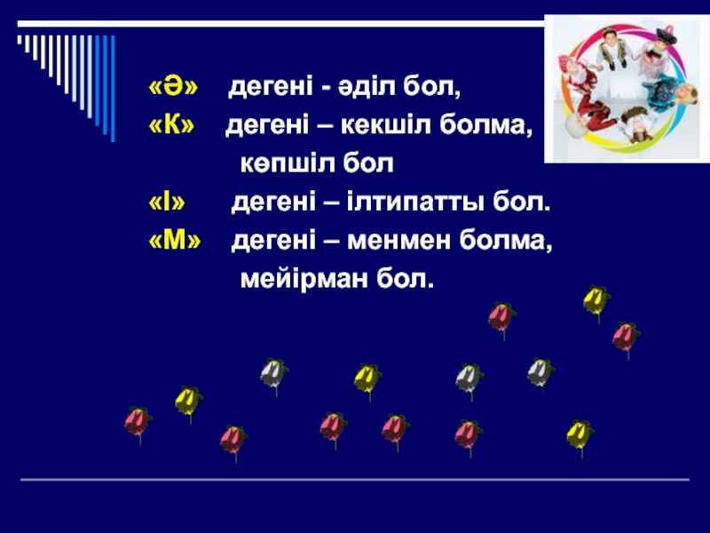 «Ә»  дегені - әділ бол,«К»  дегені – кекшіл болма,