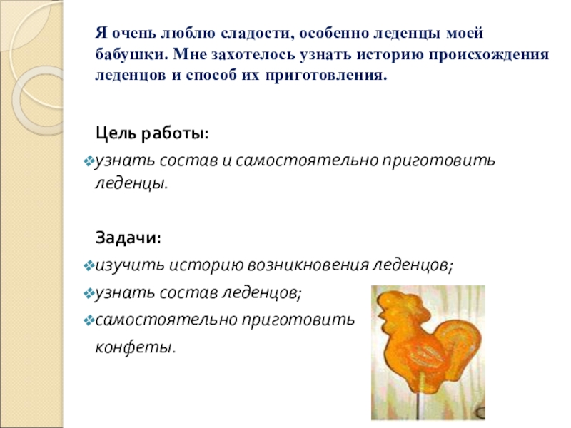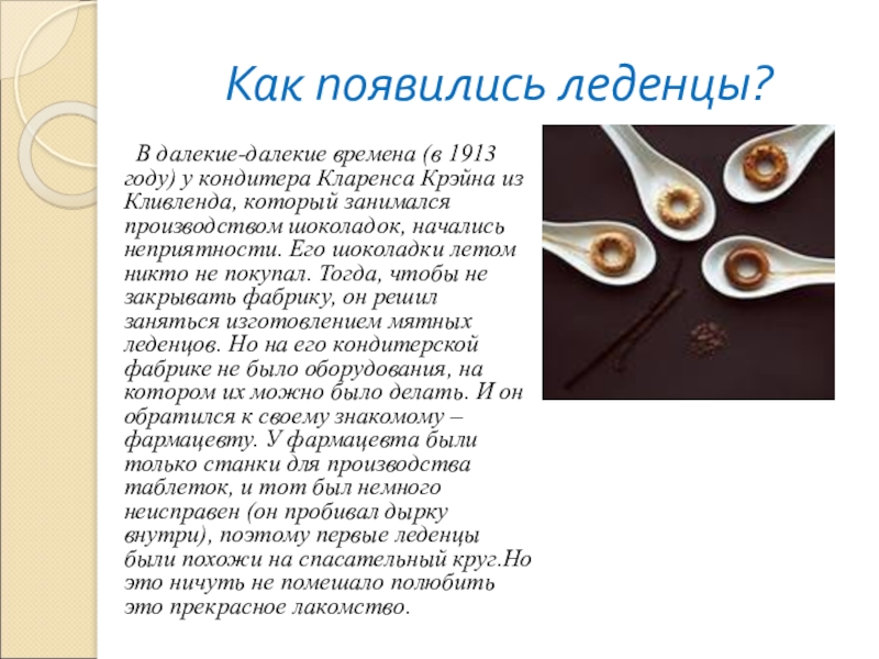 изучить историю возникновения леденцов;