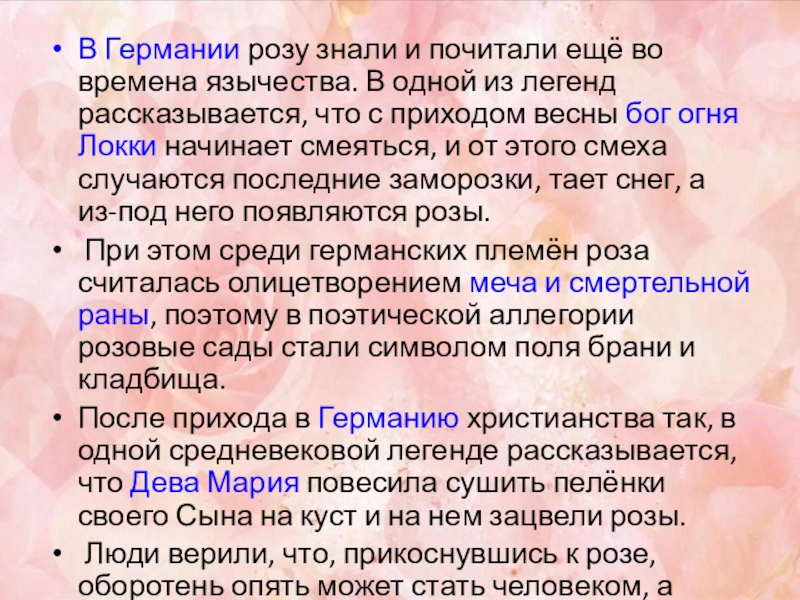 Слайд 20В Германии розу знали и почитали ещё во времена язычества. В