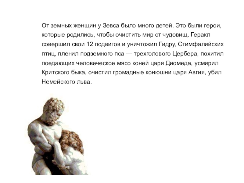 Слайд 9От земных женщин у Зевса было много детей. Это были герои,
