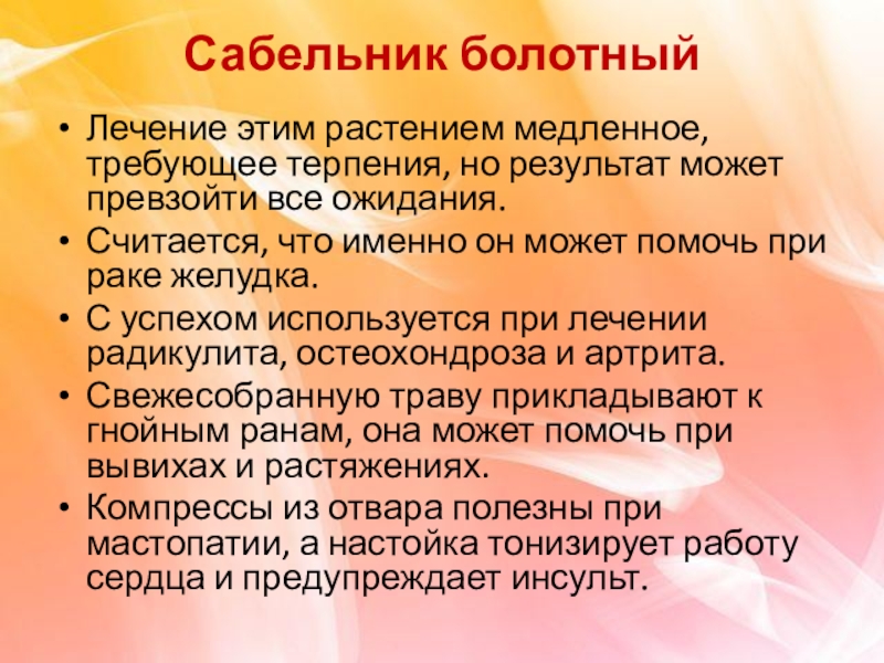 Лечение этим растением медленное, требующее терпения, но результат может превзойти