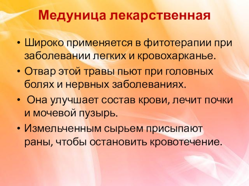 Широко применяется в фитотерапии при заболевании легких и кровохарканье.