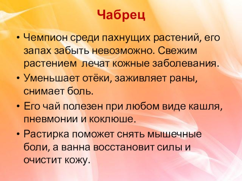 Чемпион среди пахнущих растений, его запах забыть невозможно. Свежим растением лечат