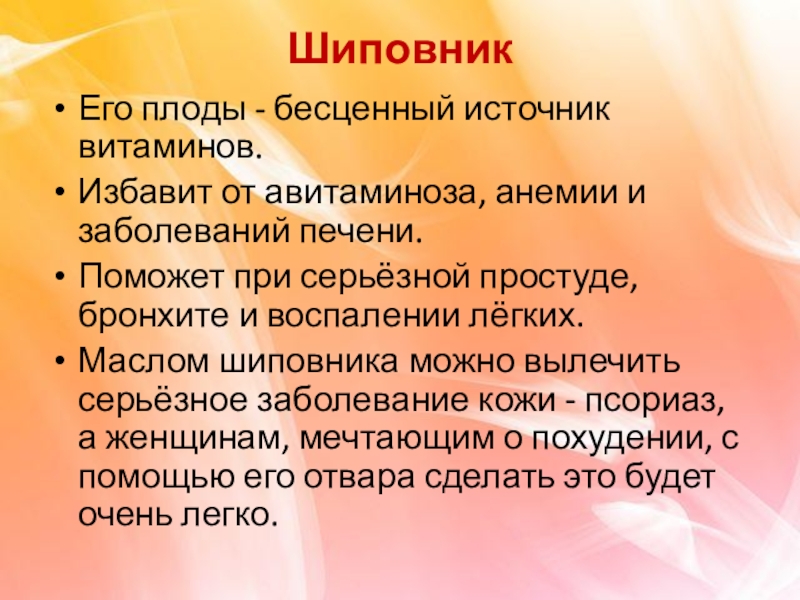 Маслом шиповника можно вылечить серьёзное заболевание кожи - псориаз, а женщинам, мечтающим о похудении, с помощью его отвара сделать это будет очень легко.