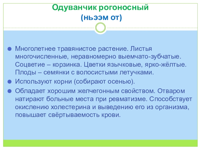 Слайд 10Одуванчик рогоносный