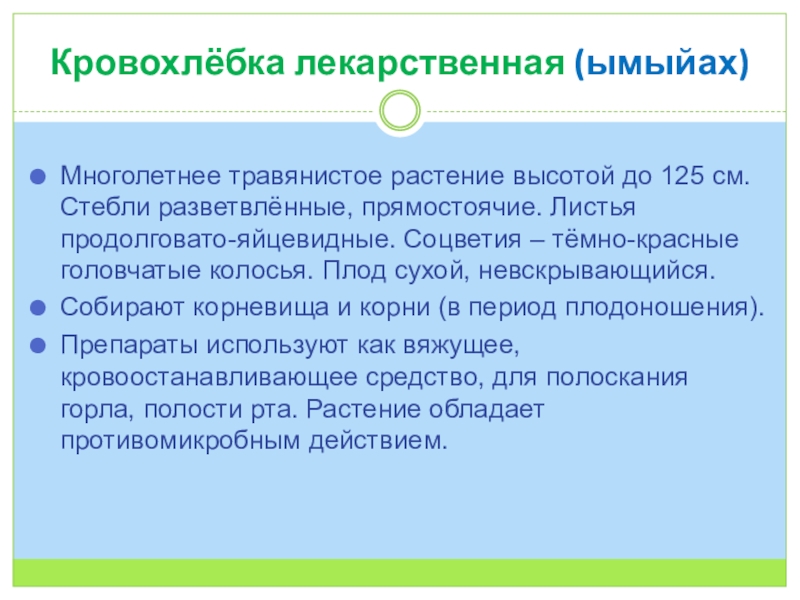 Слайд 8Кровохлёбка лекарственная (ымыйах)