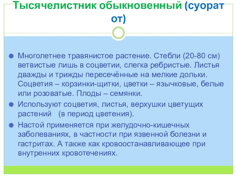 Слайд 17Тысячелистник обыкновенный (суорат от)