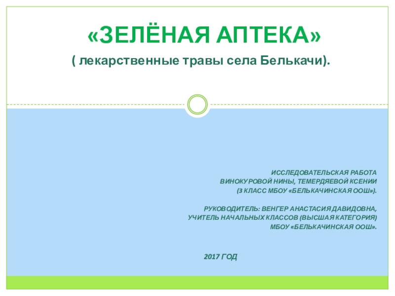 ( лекарственные травы села Белькачи).