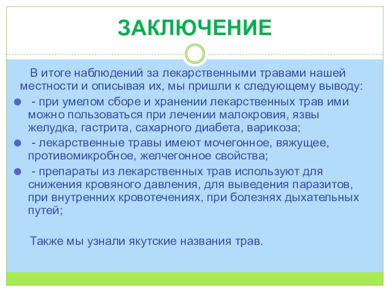 В итоге наблюдений за лекарственными травами нашей местности и