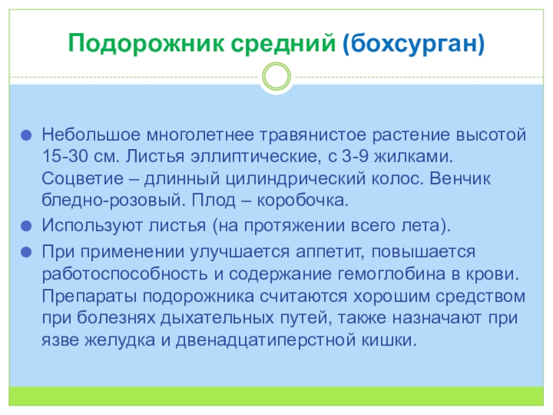 Слайд 14Подорожник средний (бохсурган)