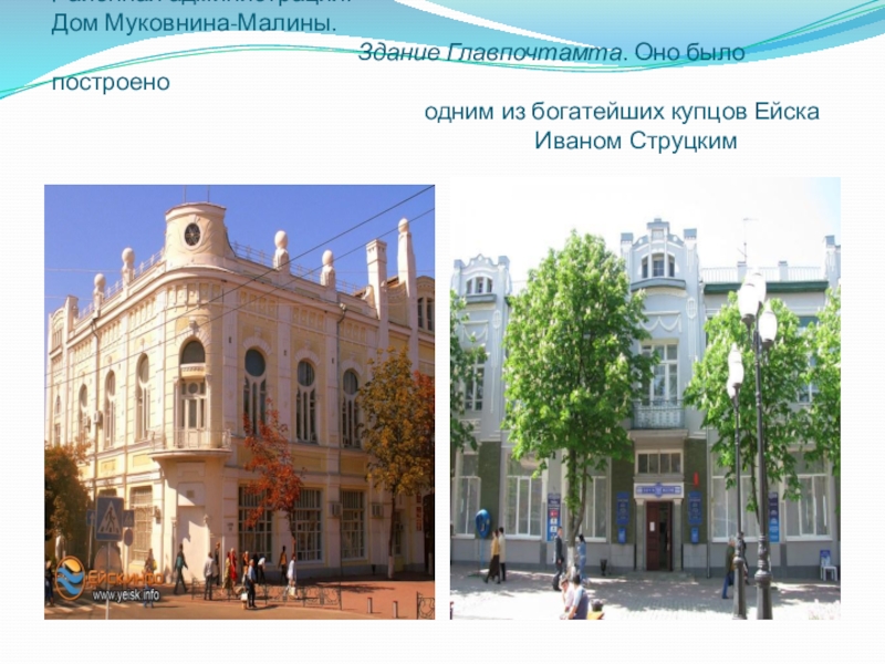 Слайд 4 Районная администрация. Дом Муковнина-Малины.