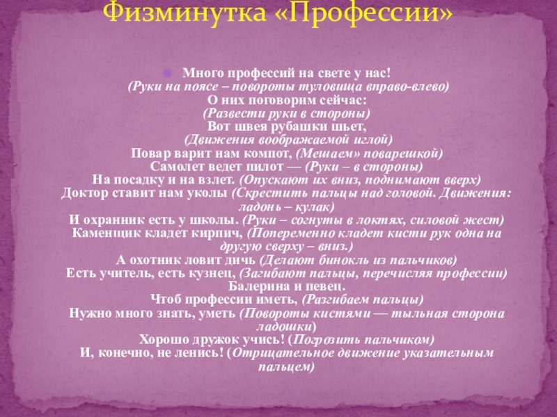 Физминутка «Профессии»
