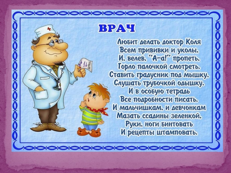 Есть учитель, есть кузнец, (Загибают пальцы, перечисляя профессии)