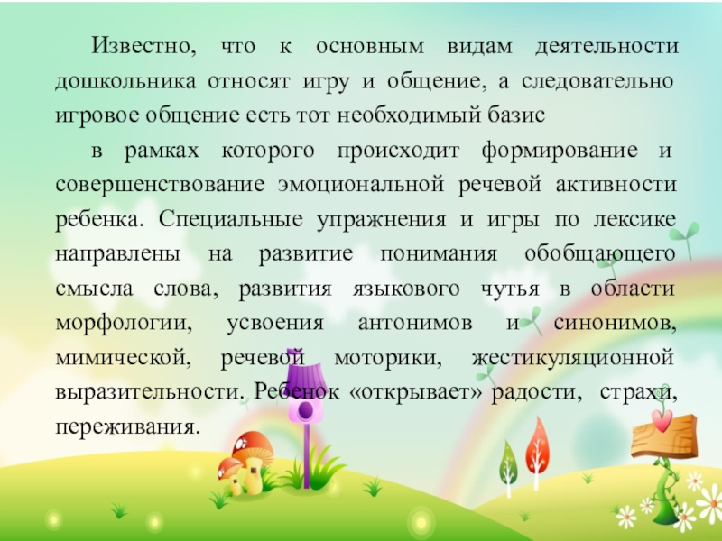 Слайд 3 Известно, что к основным видам деятельности дошкольника относят игру и общение,