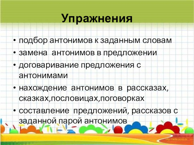 нахождение антонимов в рассказах, сказках,пословицах,поговорках