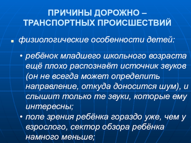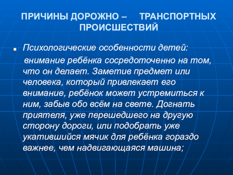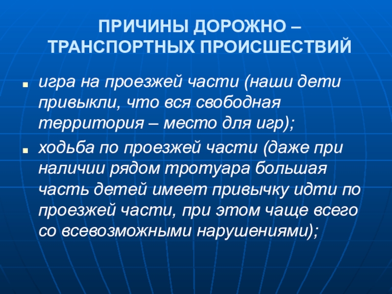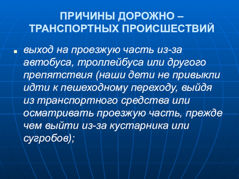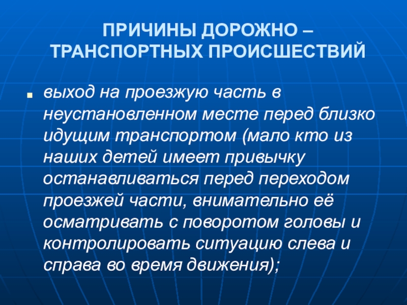 Слайд 6ПРИЧИНЫ ДОРОЖНО – ТРАНСПОРТНЫХ ПРОИСШЕСТВИЙ