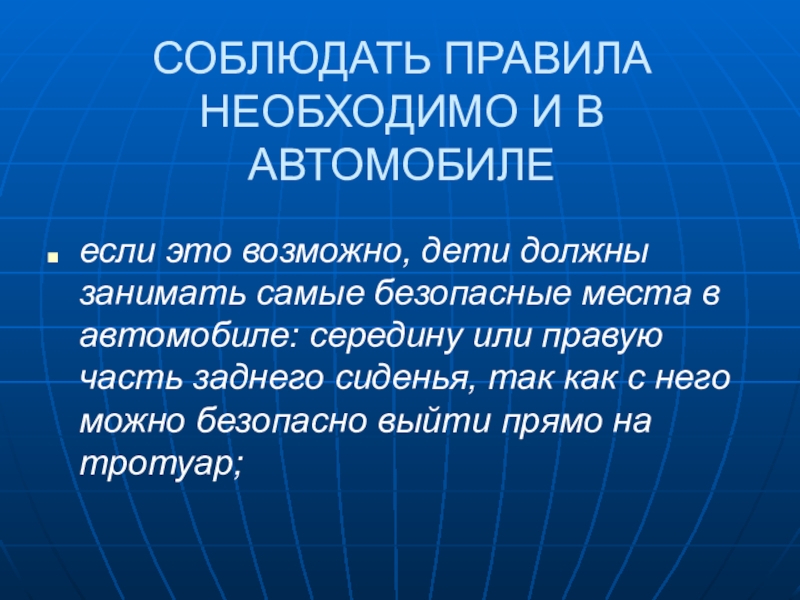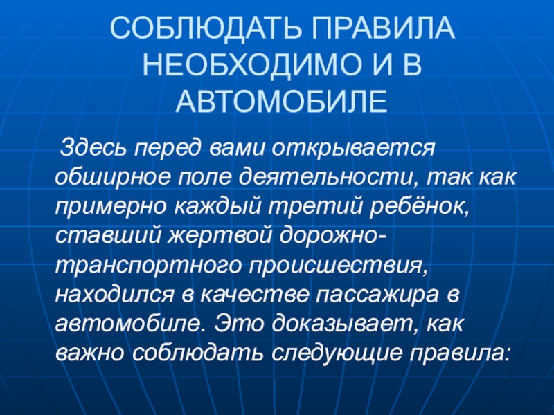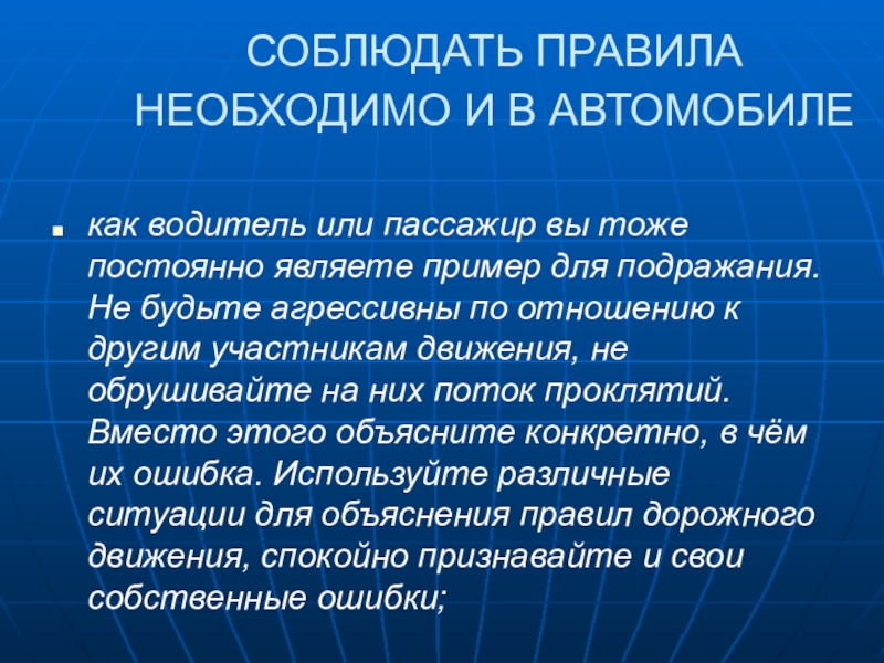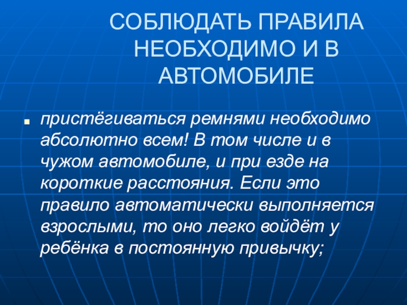 Слайд 25СОБЛЮДАТЬ ПРАВИЛА НЕОБХОДИМО И В АВТОМОБИЛЕ