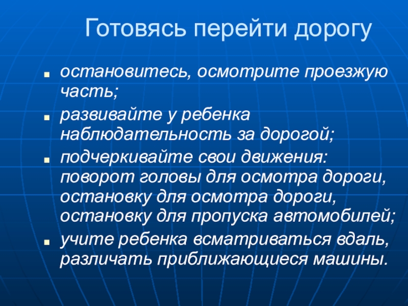 учите ребенка всматриваться вдаль, различать приближающиеся машины.