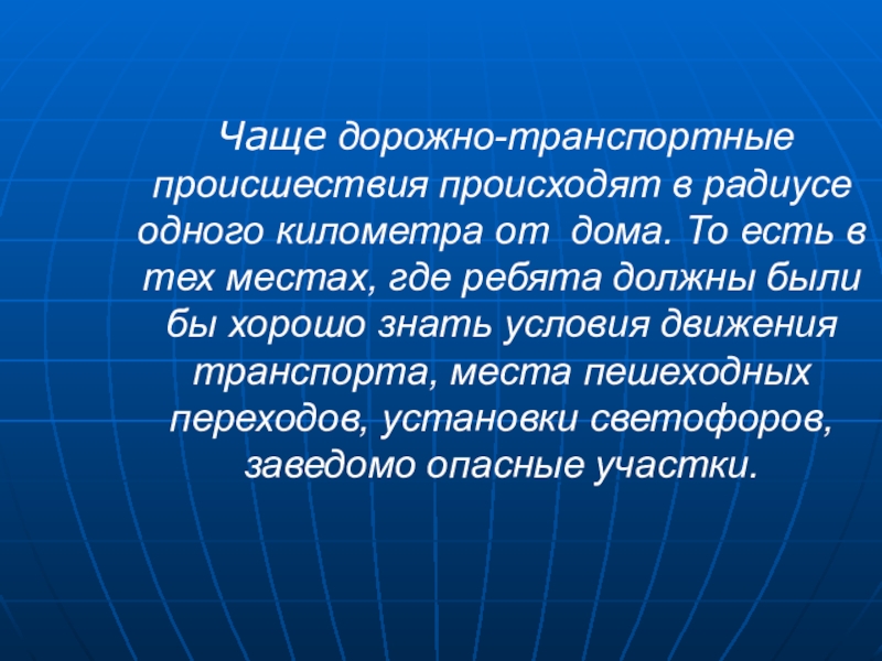 Слайд 2 Чаще дорожно-транспортные происшествия происходят в радиусе одного километра от