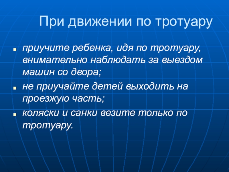 приучите ребенка, идя по тротуару, внимательно наблюдать за