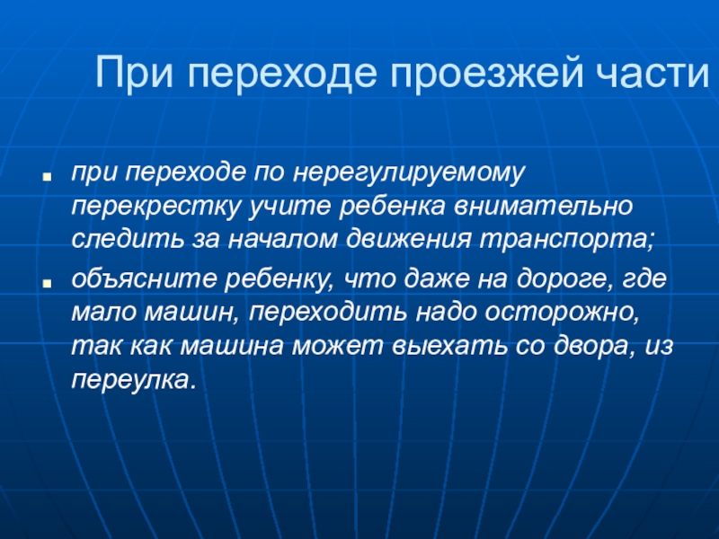 при переходе по нерегулируемому перекрестку учите ребенка внимательно