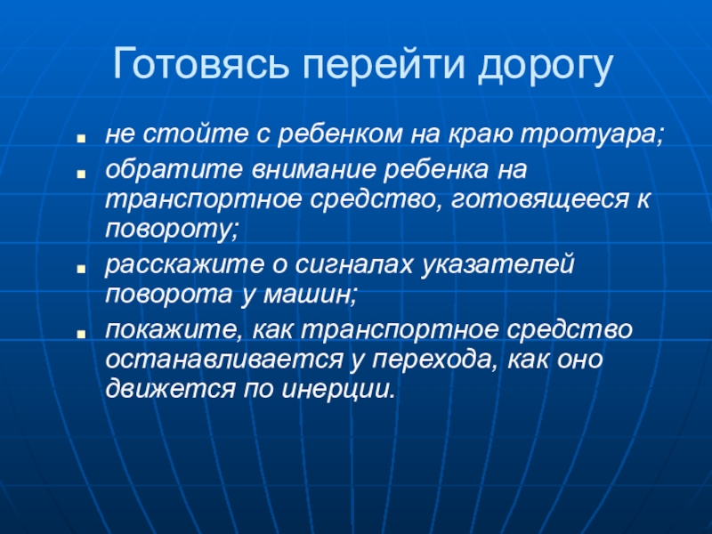обратите внимание ребенка, нет ли приближающегося транспорта;