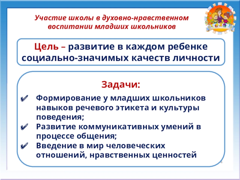 Формирование у младших школьников навыков речевого этикета и культуры поведения;