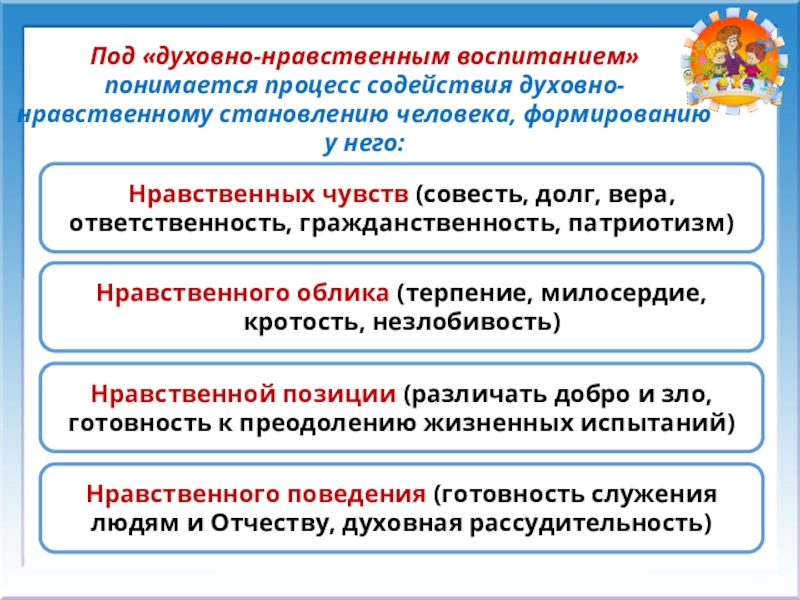 Нравственного поведения (готовность служения людям и Отчеству, духовная рассудительность)