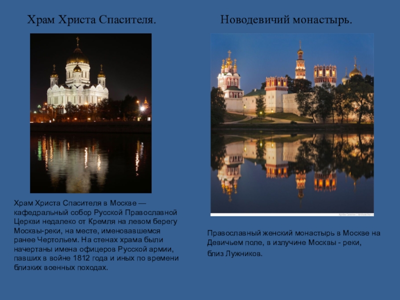 Православный женский монастырь в Москве на Девичьем поле, в излучине Москвы - реки, близ Лужников.