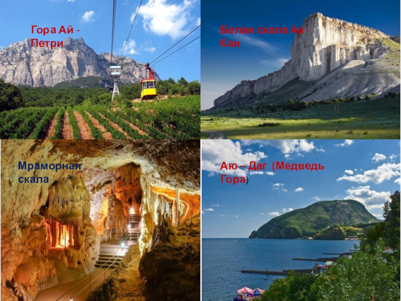 Белая скала Ак - КаяГора Ай - ПетриМраморная скалаАю – Даг (Медведь Гора)